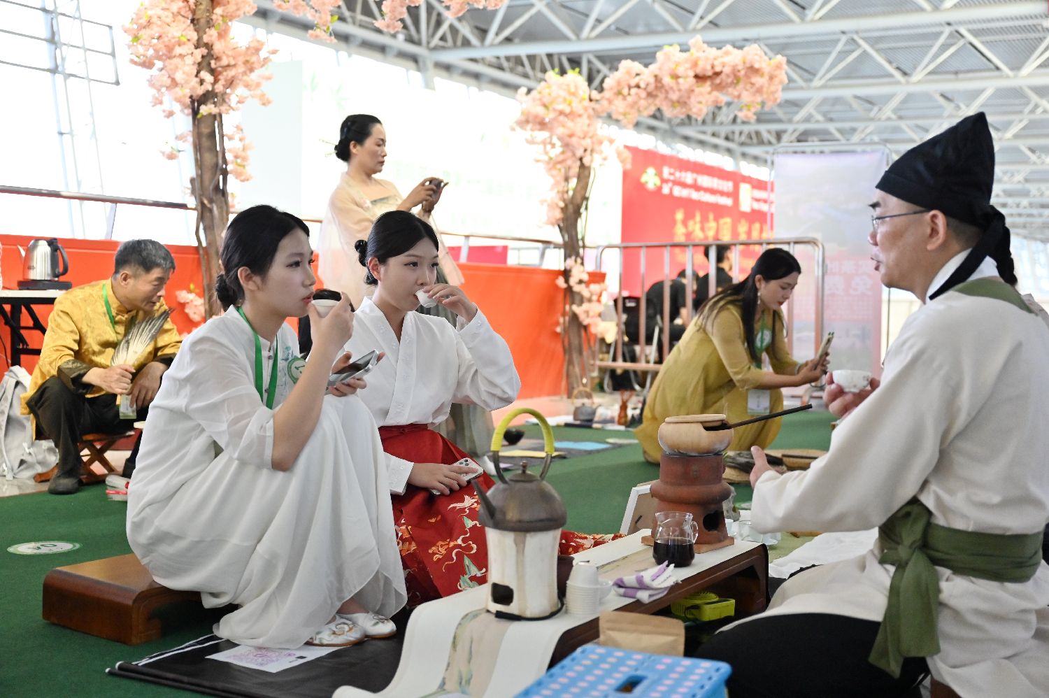 5月21日,2025春季中国(广州)国际茶业博览会在广东广州举办。本次博览会以“茶味中国,岁月担当”为主题,通过多元举措打造沉浸式茶文化盛宴,助力茶产业创新升级。图为参观者在品茶。(中新社)