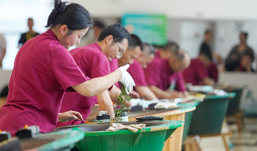5月21日,2025中国浙江省龙井茶炒制技能大赛在杭州开幕。今年大赛围绕龙井茶手工炒制技艺比拼,设新锐、巅峰两组,每位选手将使用规定鲜叶原料,在规定场地、规定时间内完成规定数量的龙井茶手工炒制,评审专家对比赛茶样进行感官审评,选出竞赛优胜者,分别授予参赛选手“浙江省龙井茶制茶大师”“浙江省龙井茶制茶新秀”“2025浙江省龙井茶炒制能手”“2025浙江省龙井茶青年炒制能手”称号。(人民网)