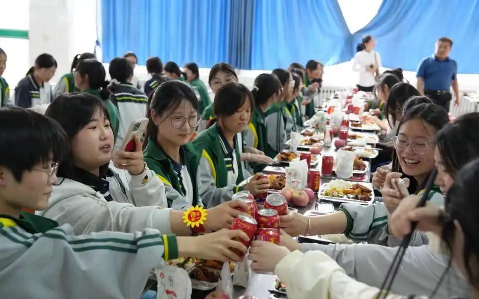 6月5日,山东泰安英雄山中学举行“共吃团圆饭,共话师生情”活动,为全体高三学子送上深情祝福。这场以美食为媒、以温情为帆的特别仪式,让备战高考的征程饱含着母校独有的烟火气与书卷香。(山东《齐鲁晚报》)