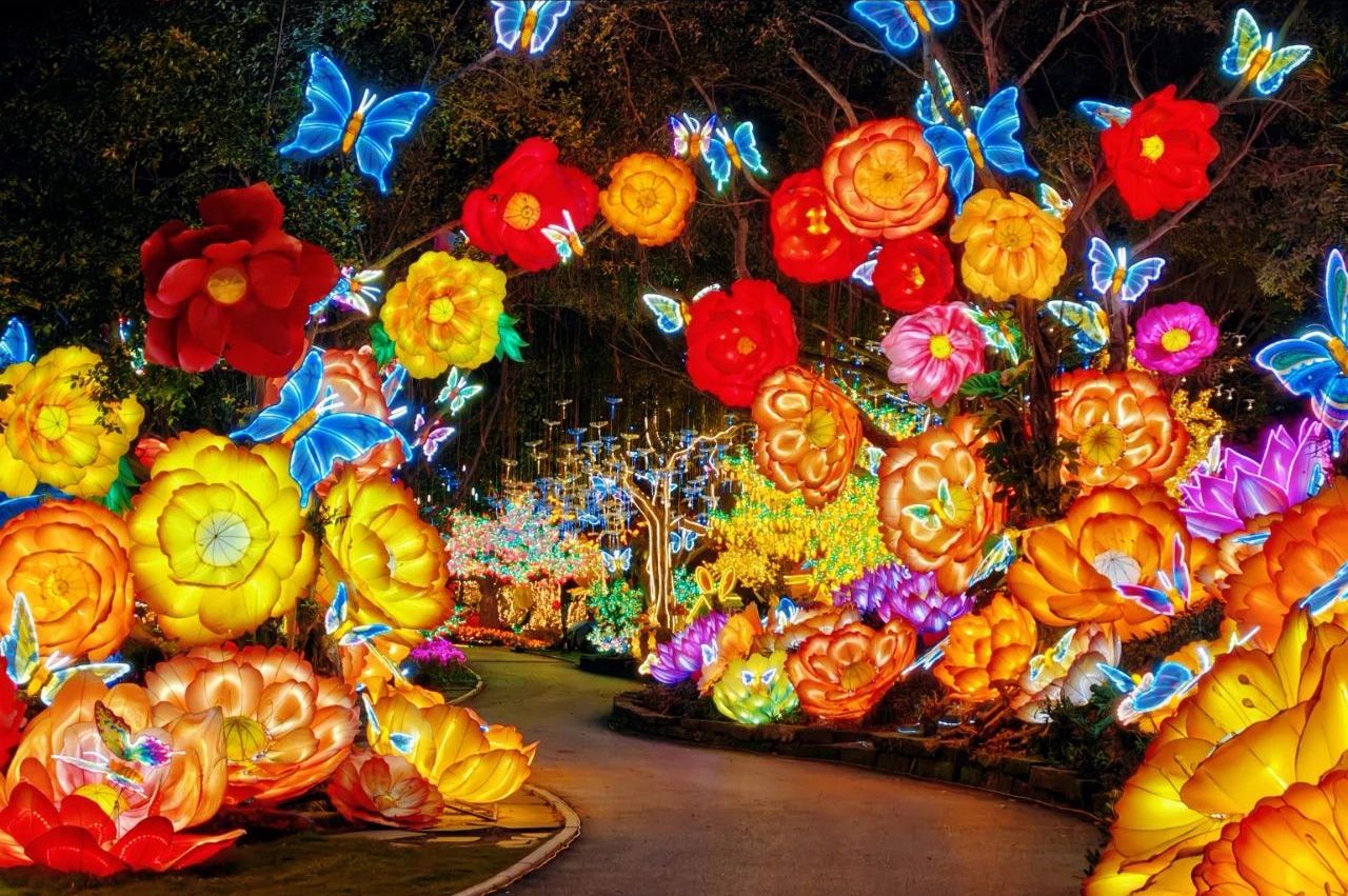 广西南宁市青秀山风景区进行试灯彩排。(南宁青秀山风景区微信公众号)