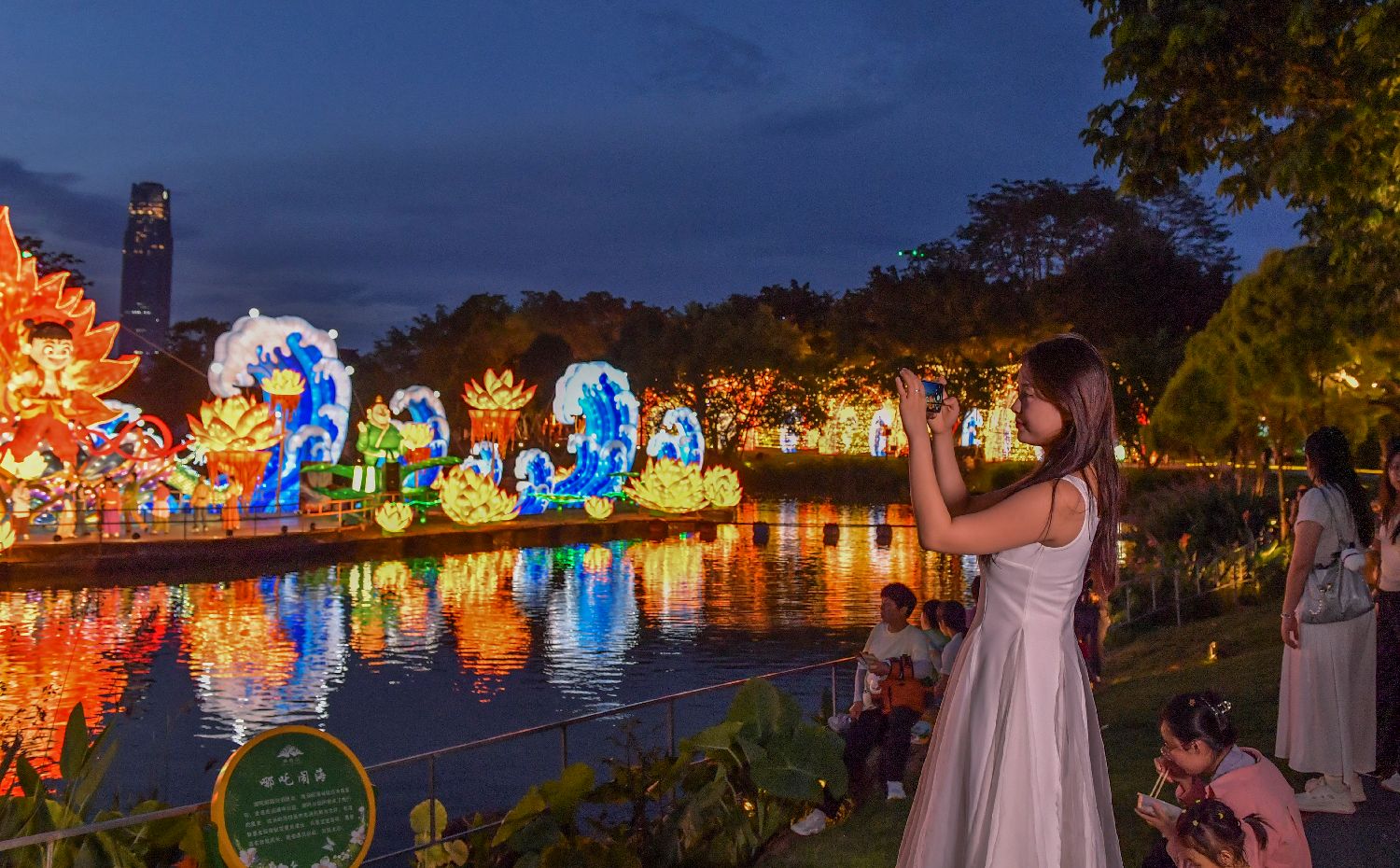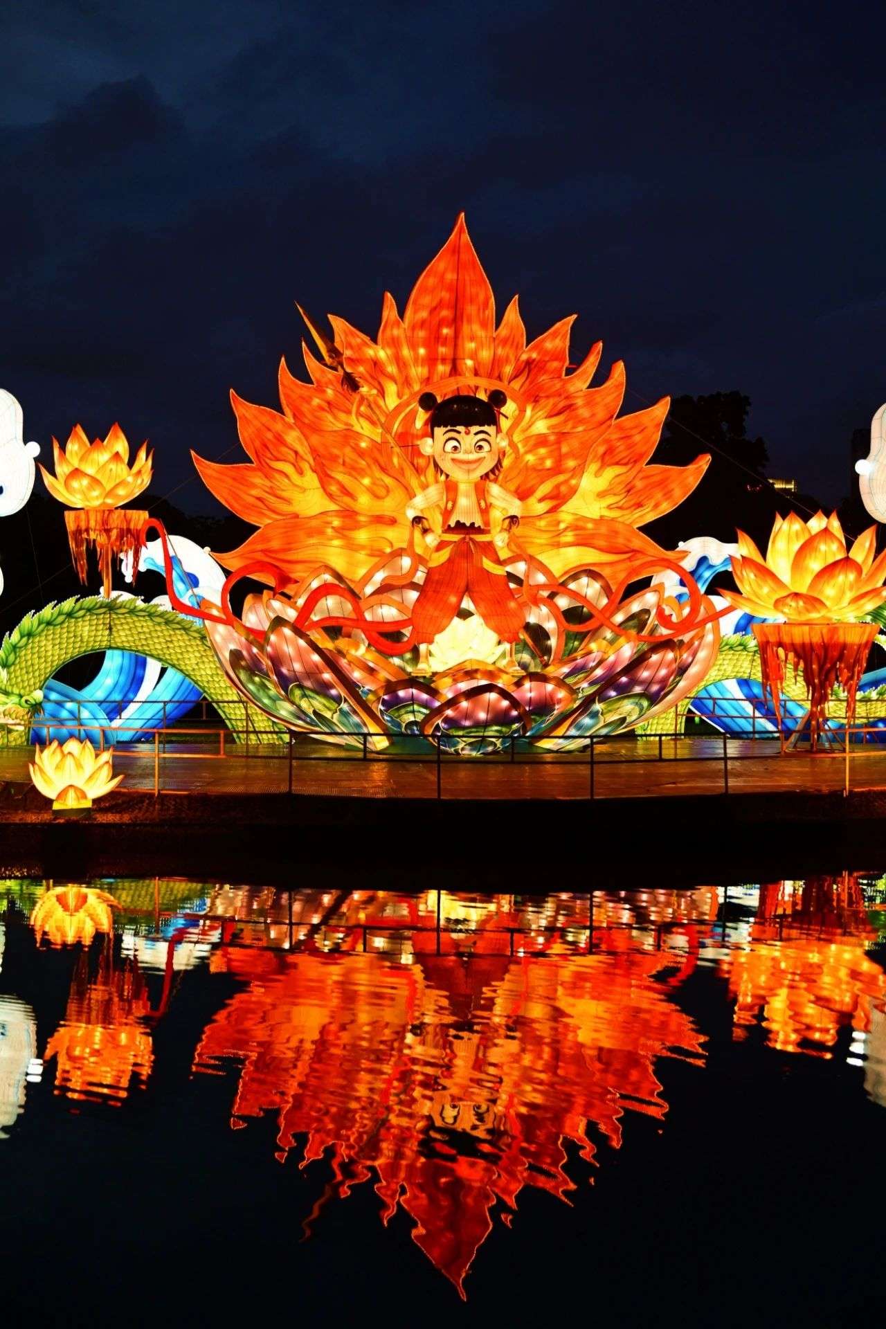 广西南宁市青秀山风景区的哪吒主题花灯。(南宁青秀山风景区微信公众号)