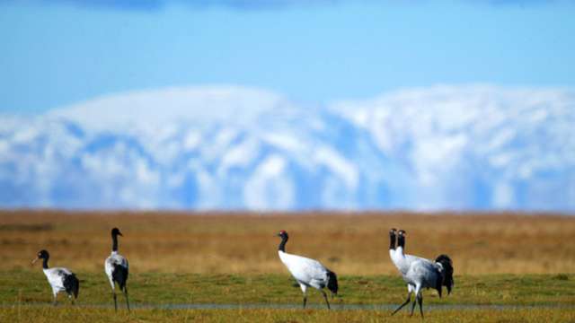 保护区的持续努力为野生动植物创造了更优生存环境。目前湿地植物增至386种,湿地动物达109种,其中国家一级保护动物黑颈鹤、黑鹳种群数量稳定在80只和150只左右,水鸟总量维持在3万只规模。更令人振奋的是,雪豹这一高原生态"旗舰物种"自2018年起连续5年被红外相机捕捉到活动影像,印证了生态系统整体向好。