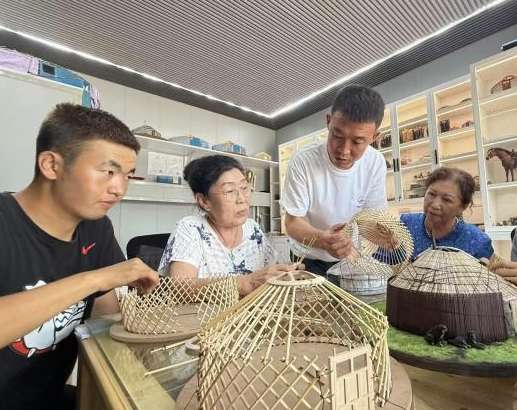 7月13日,内蒙古呼伦贝尔,年轻的蒙古包营造技艺传承人正在教授学生们如何搭建蒙古包。(图片来源:中新社)