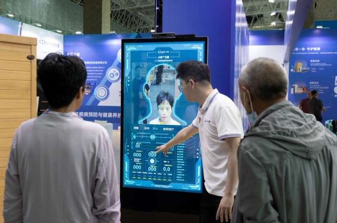 9月12日,民众在2025宁夏养老服务业博览会上体验人工智能健康筛查系统。