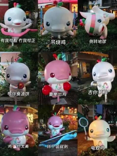 对此,吉祥物设计团队负责人刘平云介绍,其实最初的时候,挺担心把它做成一个可以吃的东西,因为广东是“食在广东”,大家都会把任何东西看成吃的,“我们当时选择中华白海豚,也是想避免‘被吃掉’,心想白海豚总不能‘被吃掉’吧。于是就选择一些不能吃的东西来做,然后慢慢聚焦中华白海豚。但没想到,万万没想到,白海豚都被调侃成白切鸡和豉油鸡了。”