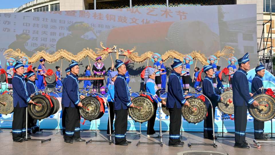 河池铜鼓文化生态保护区管理中心副主任张柏源介绍,河池铜鼓山歌艺术节已从地方性活动,成长为连接中外的文化交流平台。艺术节期间,设中国—东盟铜鼓习俗保护学术交流活动、非遗集市等“国际范儿”环节,让中外学者深度解码铜鼓文化内涵。同时,保留文艺汇演、山歌擂台赛等“接地气”活动,全方位呈现当地文化特色。