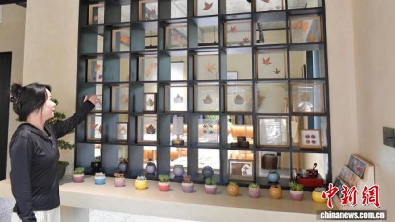 和孙敏一样想法的还有“90后”民宿店长徐长英。枫叶耳饰、树叶状的器皿、各种落叶标本做成的装饰墙……庭院里,她打理着一间“秋日集合地”。