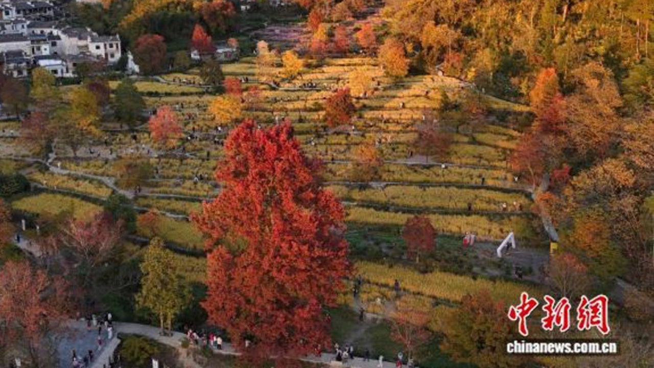 2024年11月11日,初冬时节,黄山市黟县塔川村景色斑斓。(资料图无人机照片) 韩苏原摄