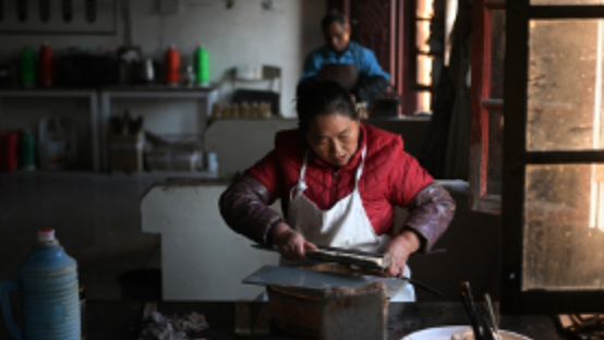 11月20日,在泾县三兔宣笔有限公司内,工人进行宣笔制作工艺中的“梳理”环节。韩苏原摄