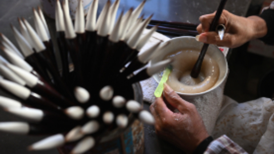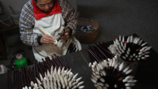 宣笔的制作已有2000多年历史,因产于古宣州而得名,是中国四大名笔之一,制作需经过选料、配料、齐毫、圆笔、修笔等100多道工序。