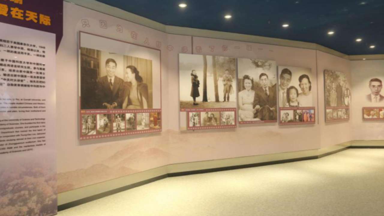 这里展示了郭永怀同志的半身汉白玉雕像,以及刻有郭永怀同志一生历程的浮雕背景墙。东西两侧设有服务中心和题词、留言设施,电视可点播郭永怀同志纪录片、李佩先生访谈录、郭永怀同志部分学生访谈录以及中科大纪念郭永怀同志所创作的音乐剧《爱在天际》等内容。