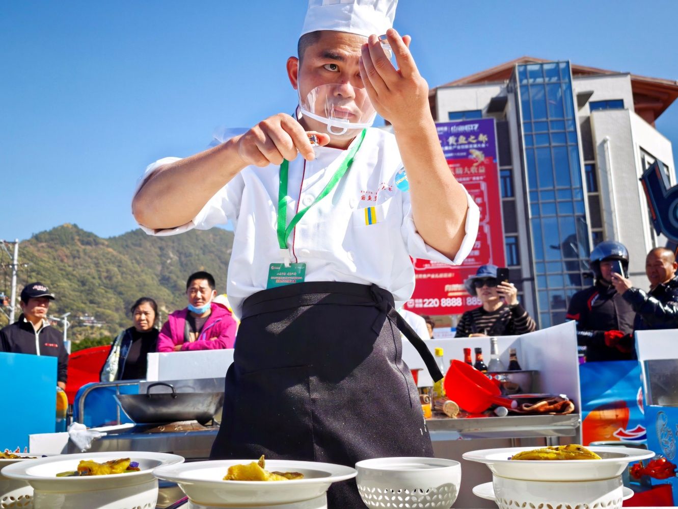 “国鱼烹饪创新大赛”上,厨师正制作大黄鱼创新菜品。