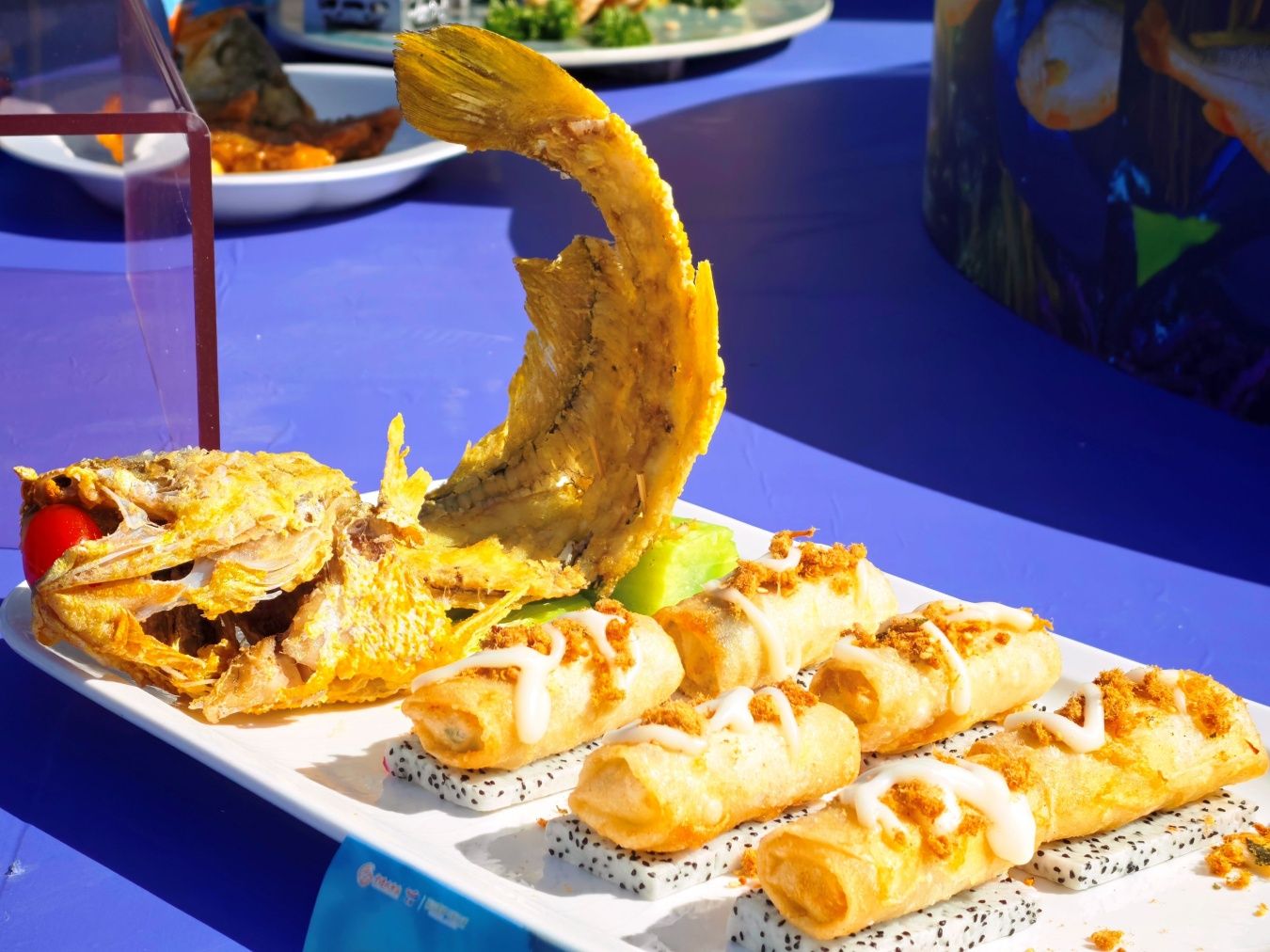 双椒蒸大黄鱼、金丝黄鱼卷、紫菜黄鱼酥……本次大会的线下活动“国鱼烹饪创新大赛”上,现场烹饪的各色大黄鱼创新菜品,让来自宁德市的游客陈丽芳目不暇接。