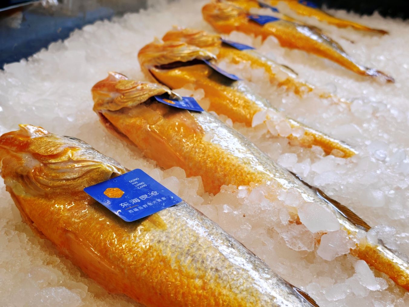 图为“线下大黄鱼销售促消费活动”中,商户展示的冰鲜大黄鱼。