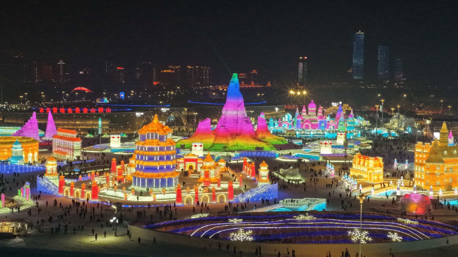 第二十七届哈尔滨冰雪大世界于17日开园迎客,规模为历届最大。园区通过冰雪复刻中国黄鹤楼、比利时王国城堡等建筑,融合展现东方美学和国际风情。