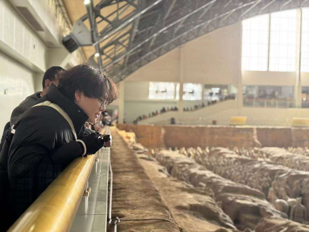 12月23日,香港学生赖志贤在秦始皇帝陵博物院参观游览。