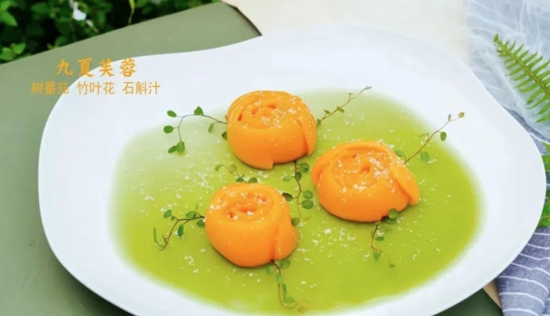 图为用树番茄、竹叶花、石斛汁等制作而成的特色菜肴。(图片来源:昆明滇池国家旅游度假区总工会)