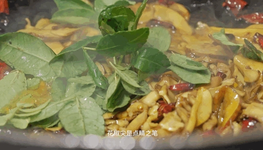 图为炒见手青。(图片来源:纪录片《食在云南》截图)