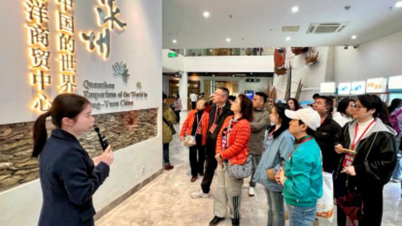 随后,媒体代表来到泉州海外交通史博物馆。馆内通过影像与实物相结合的方式,生动再现宋元时期泉州作为世界海洋商贸中心的繁荣景象:涂门街上外商云集、瓷器贸易兴盛、航运网络四通八达、多种宗教和谐共存。此外,宗教石刻展览馆中融合中外文化元素的石刻文物,更进一步让嘉宾领略到泉州作为古代多元文化交汇之地的包容。