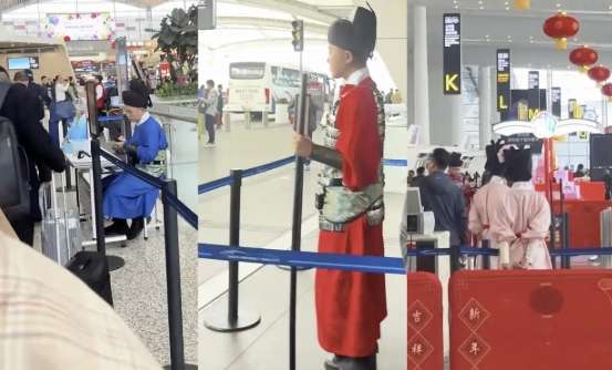 近日,广州白云机场举行的一场别开生面的汉服迎新活动在社交平台走红。多名旅客发布的视频显示,机场工作人员全员身着汉服亮相,保安化身“武士”,服务台人员则装扮成典雅大方的“大家闺秀”,吸引不少旅客驻足合影,大家纷纷点赞称“穿越感十足”。