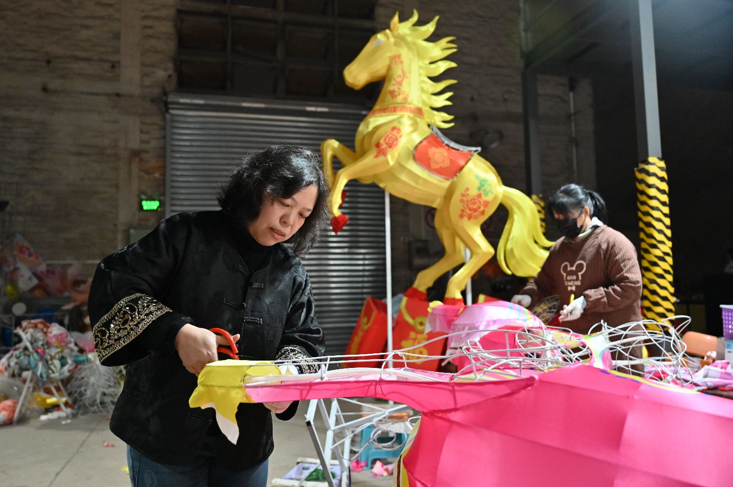 罗志环亲历了佛山彩灯工艺的迭代升级,也见证了马年彩灯的蜕变之路。她刚入行时,彩灯扎作依赖纱纸定型,体量多局限在一米多到两米。如今,烧焊技术取代传统扎作,马形彩灯体量可轻松突破5米、6米,飞马腾空、群马驰骋等造型皆能落地;灯光装置也升级为暖光、冷光、流光等多种灯带,为马形灯注入灵动气韵。