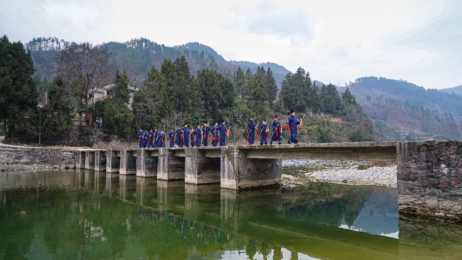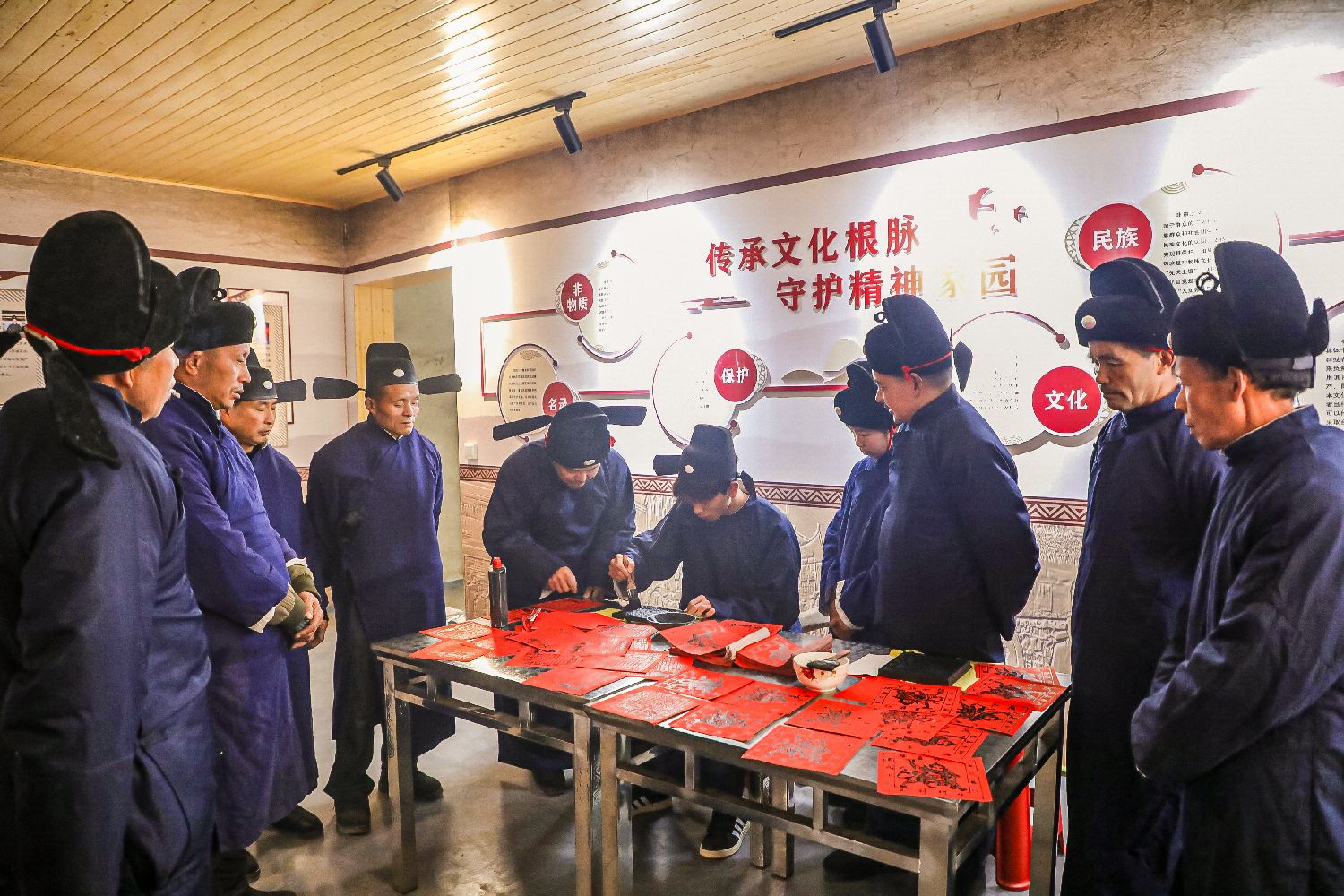 2月2日,贵州省铜仁市石阡县,部分“春官”走村入户去“说春”。