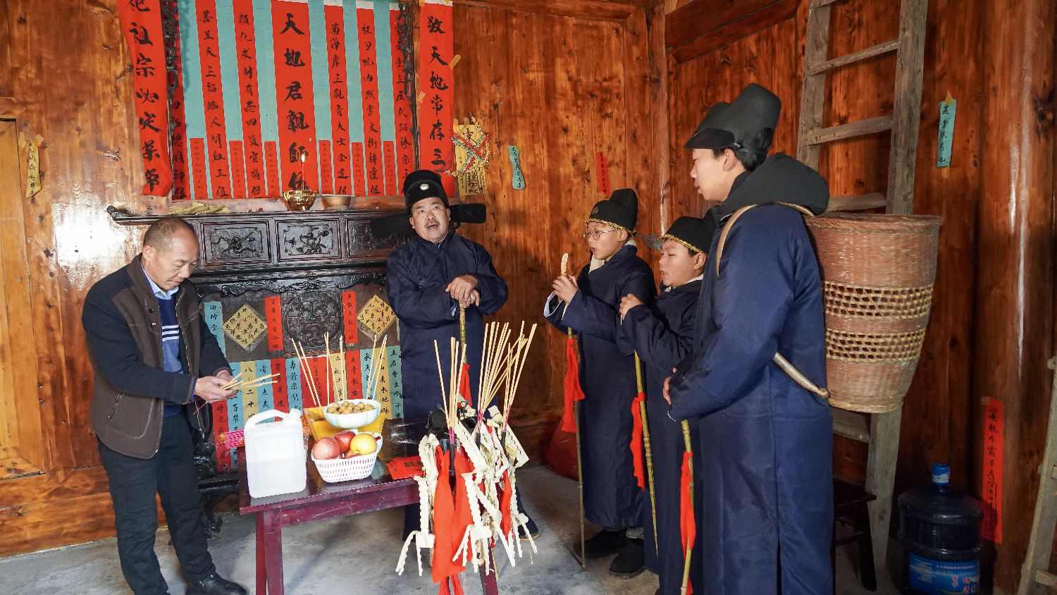 石阡县文化馆馆长饶莉介绍,“春官”唱词涵盖二十四节气的阐释,还有“渔樵耕读”等固定篇章。表演者需兼具传统知识储备与临场应对能力,将历史、伦理、生产等内容化为韵文,面向农民实现劝农耕作与文化启蒙的双重教化功能。
