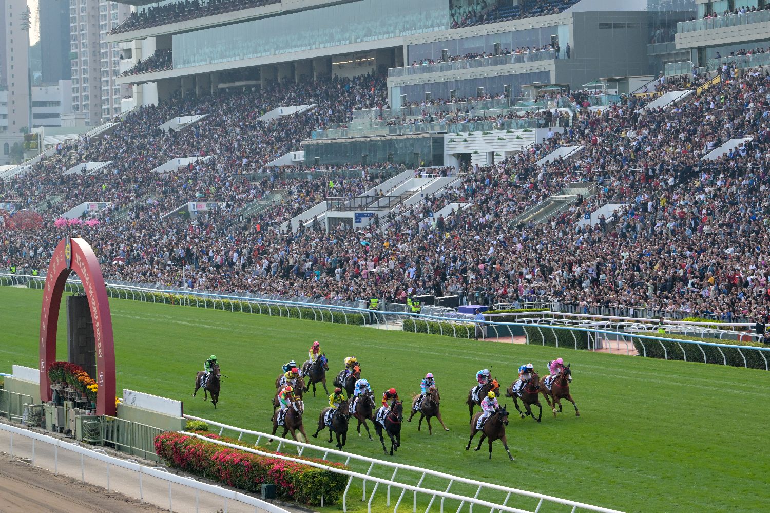 2月19日,“2026马年赛马日”活动在香港沙田马场举行。图为赛马现场。