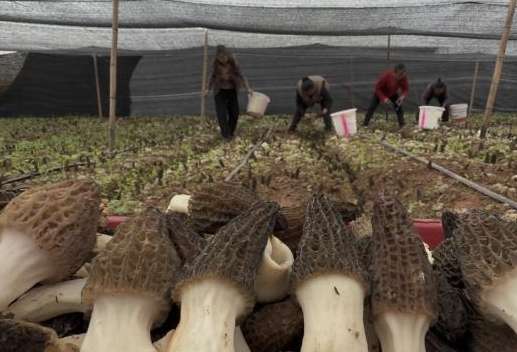 当地村民正采摘羊肚菌。