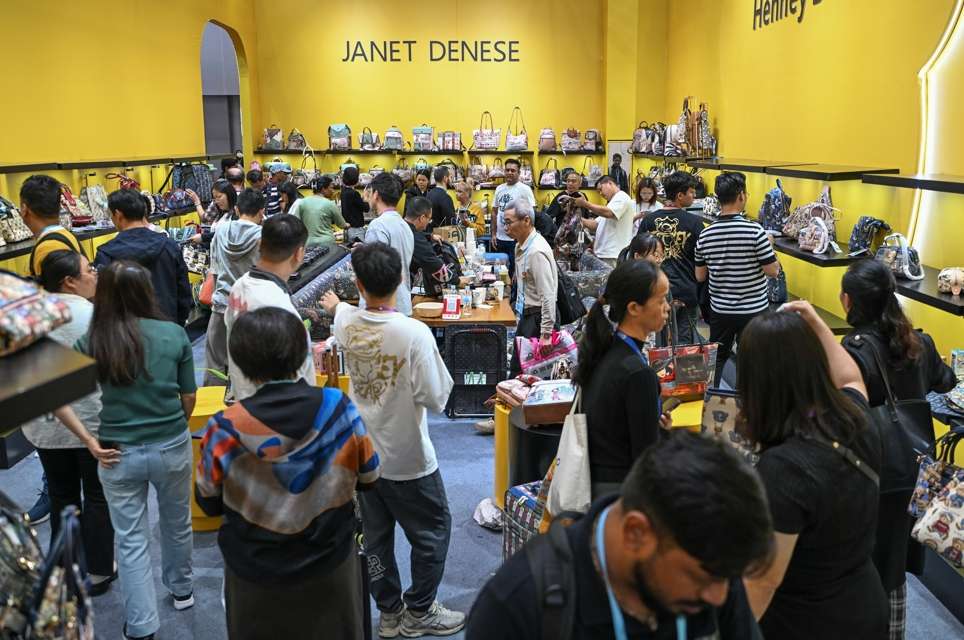 2025年11月4日,在广州举办的第138届中国进出口商品交易会(广交会)闭幕。据广交会组委会统计,本届广交会共有来自223个国家和地区的超31万名境外采购商到会,现场意向出口成交256.5亿美元。图为境外采购商在广交会箱包展区挑选产品。