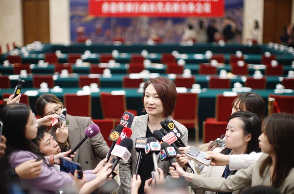 当日,十四届全国人大四次会议香港代表团举行开放团组会议。会后,李慧琼接受记者采访,并作上述表示。