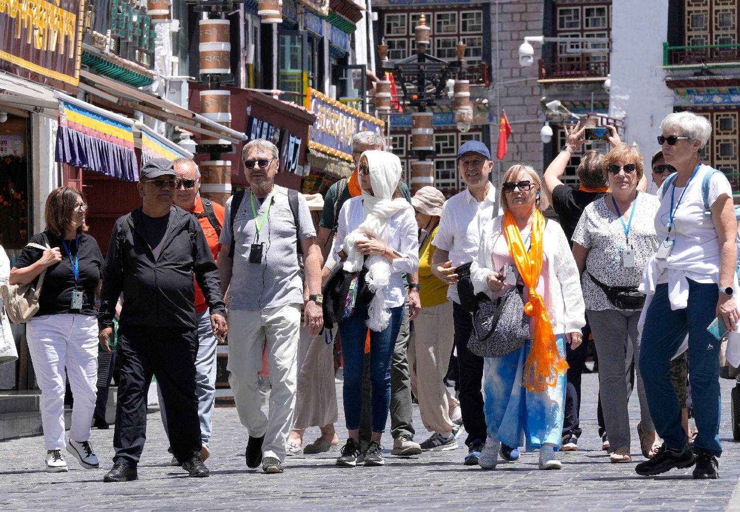 外国游客在西藏拉萨八廓街老城区内游览参观。