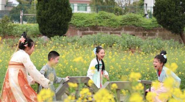 依托数千亩油菜花海,当地于3月7日至29日推出“田园花朝节”,打造沉浸式春日之旅。活动开幕以来,已吸引游客超过15万人次。花海中,有孩童身着汉服嬉戏奔跑,亦有年轻姑娘罗裙翩跹,忙趁东风放纸鸢。
