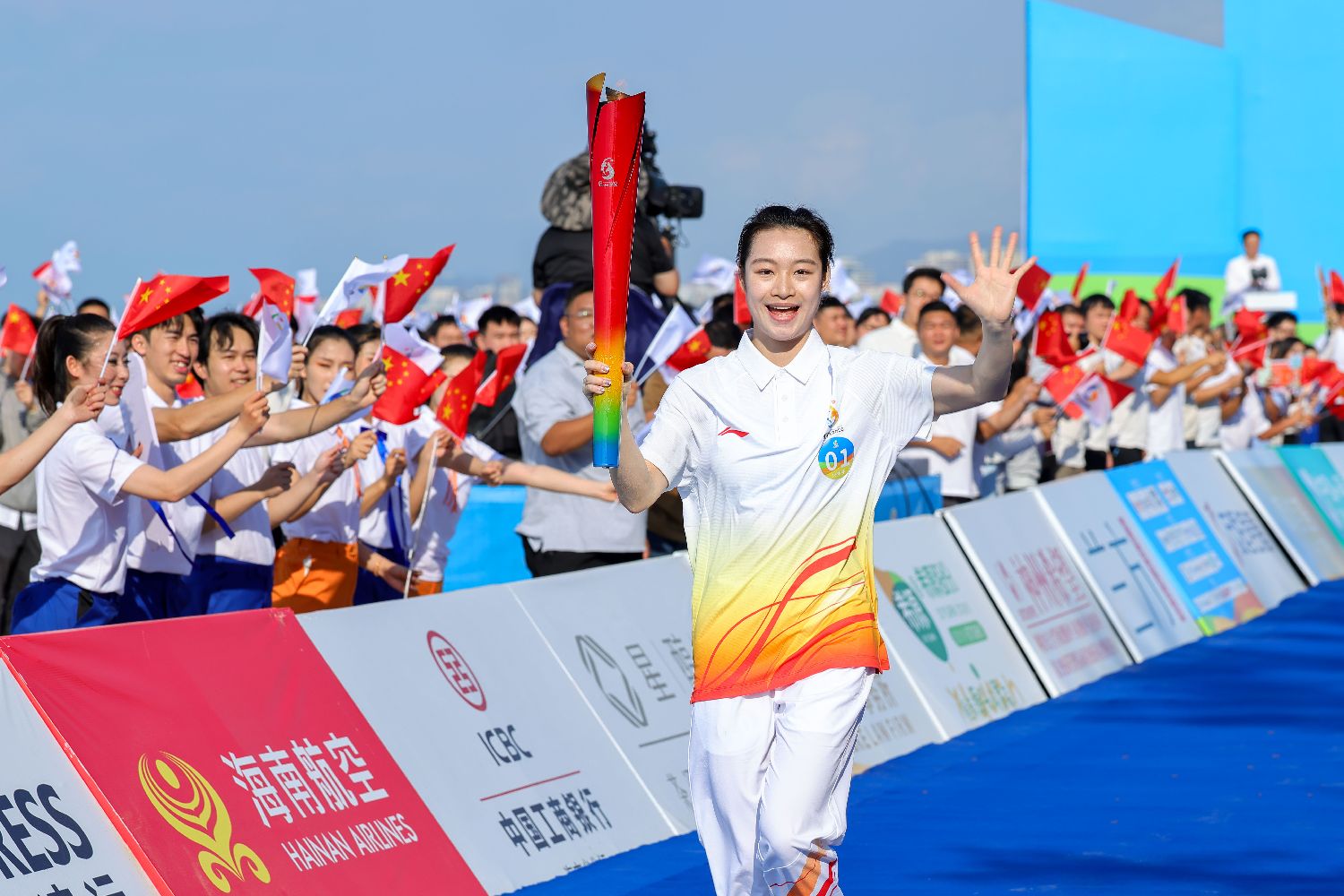 图为中国跳水运动员昌雅妮担任01棒火炬手。(中新社)