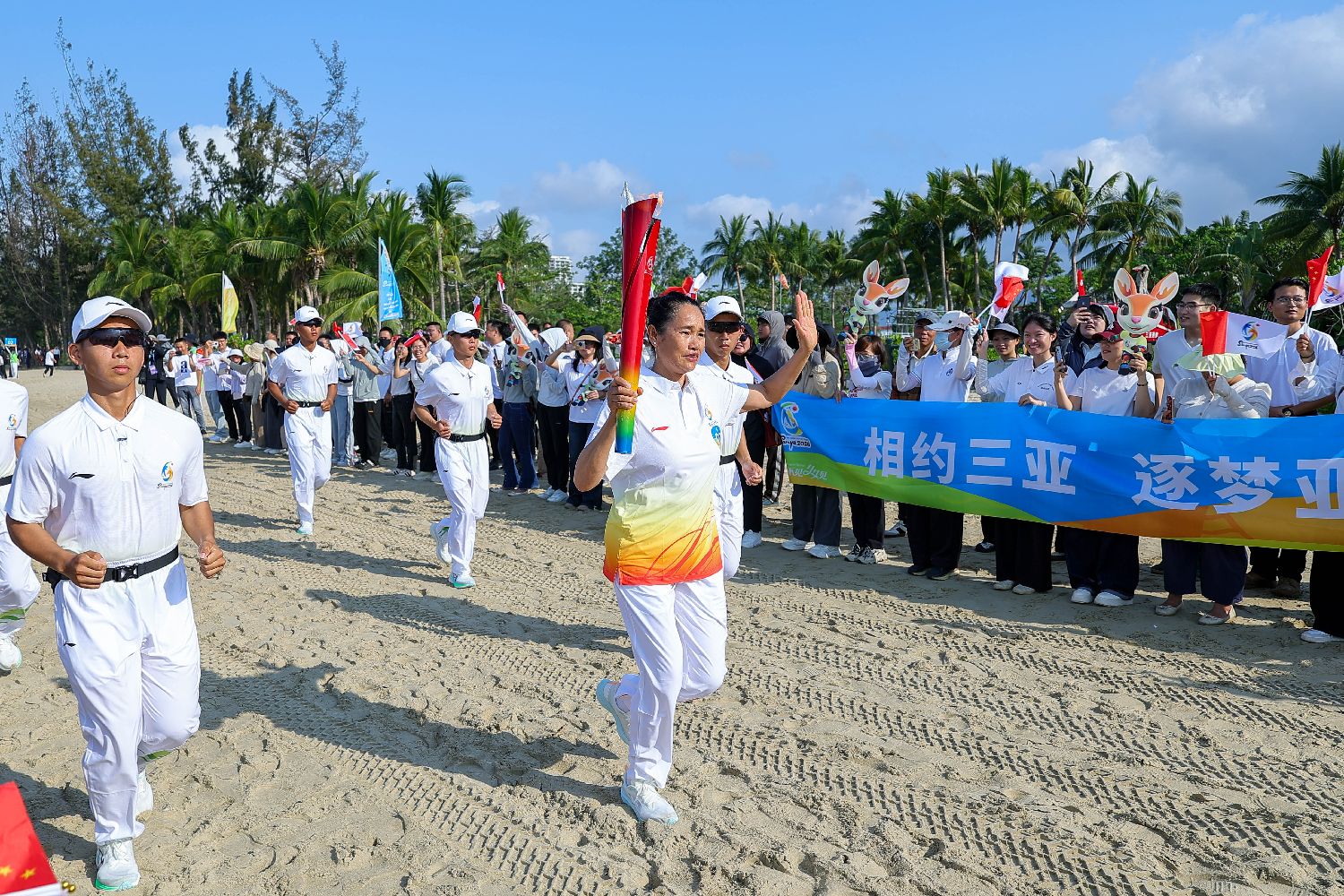 3月30日,第六届亚洲沙滩运动会火炬传递活动在海南三亚举行。本次传递以“传递友谊相约三亚”为主题,设置火种采集、起跑仪式与收火仪式三个核心环节。74名火炬手接力奔跑,串联起约10.5公里的三亚湾沿线景观,共同呈现了一场融自然风光、城市活力与体育激情于一体的预热盛典。