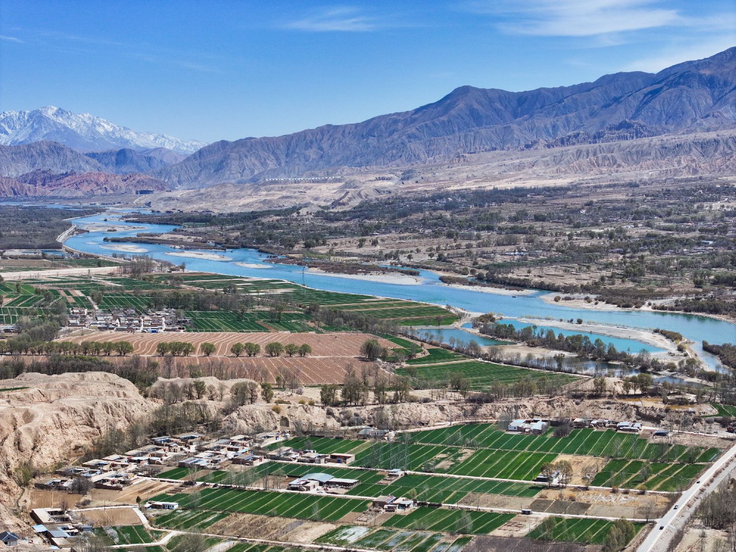 无人机照片:2025年4月12日,航拍青海省贵德县黄河岸畔春意盎然。