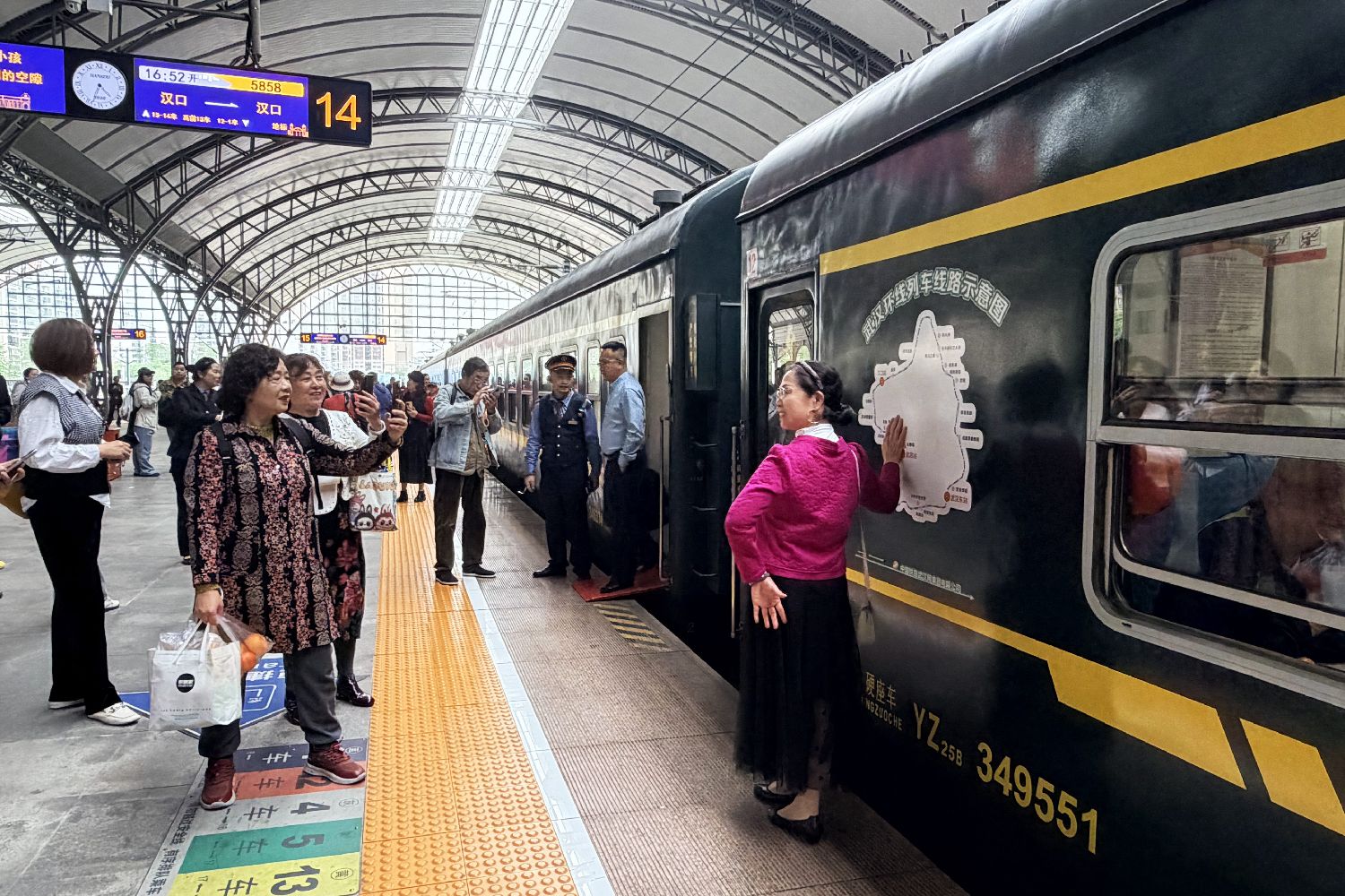 4月8日,旅客在湖北武汉搭乘5858次列车感受怀旧之旅。