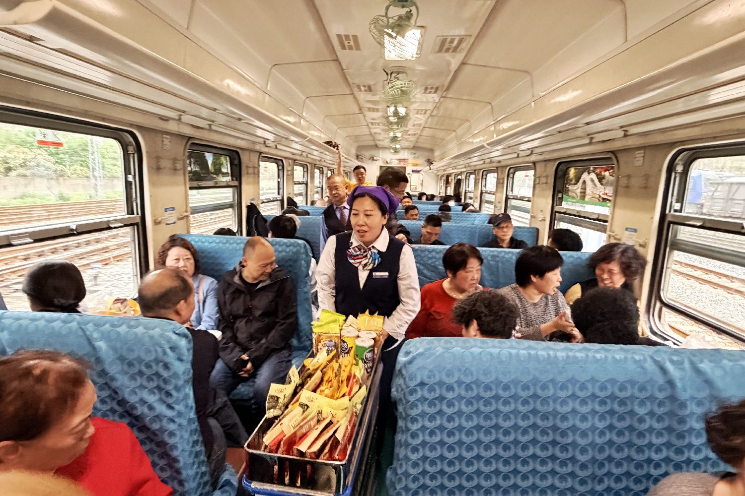 4月8日,“汉口至汉口”5858次列车上小推车零食售卖复刻旧时乘车记忆。