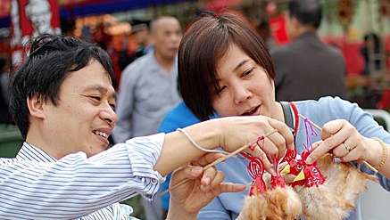 资料图:广州黄埔“波罗诞”千年庙会上,工艺品“波罗鸡”深受游客喜爱。(图/中新社)