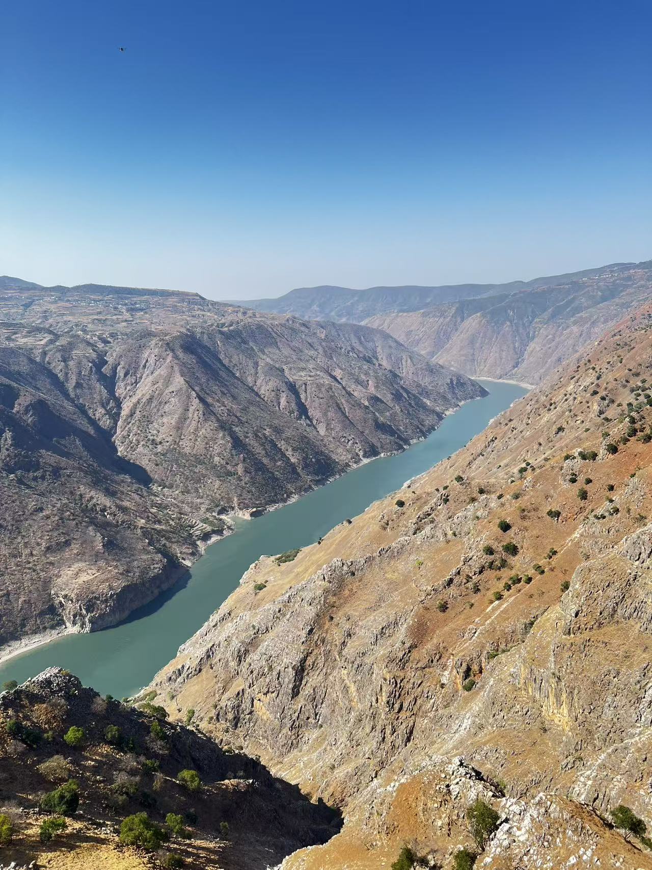 距迤沙拉村二公里处的攀西金沙江大峡谷与东非大裂谷齐名。它经数亿年地质运动与江水亿万年冲刷侵蚀共同塑造而成,以其原始粗犷的洪荒之美和深厚的文化底蕴,构成了一幅雄奇壮丽的山水画卷。峡谷气势磅礴,江水碧绿,两岸山体垂直高差巨大,部分地区从江面到峰顶高差可达1000米以上,江水在峡谷中形成接近180度的壮丽大拐弯,被誉为“天然地质博物馆”,是感受自然伟力与人文历史的理想之地。