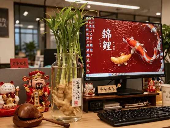 办公桌是玄学“主战场”。水培生姜被戏称为“福禄根”,生根发芽寓意“好运扎根”;泥鳅化身“土龙”,无需费心打理,象征“低调蓄力、时来运转”。这些小物件不占空间、不费精力,却成了打工人的“精神安抚物”,为快节奏生活提供温柔缓冲。