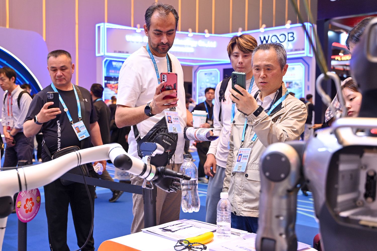 图为一款智能机械臂吸引境外采购商。(中新社)