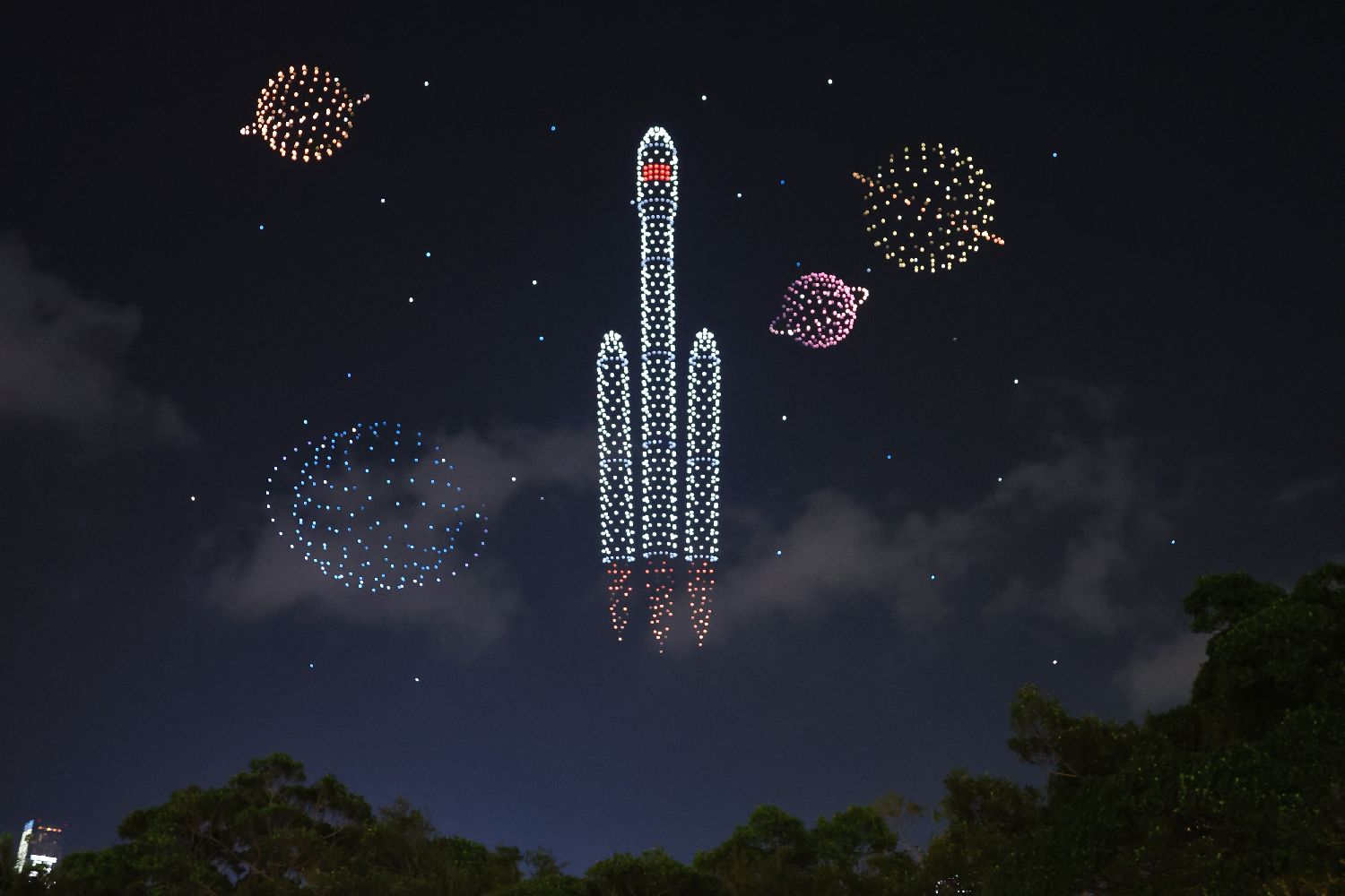 图为无人机展示“火箭升空”画面。(香港中通社)