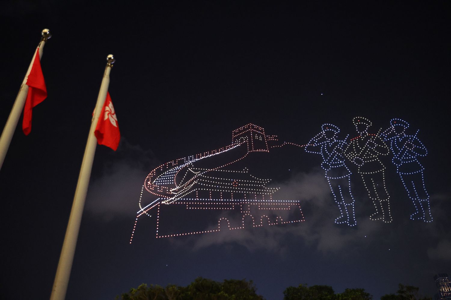 图为无人机展示“国安家好”字样。(香港中通社)