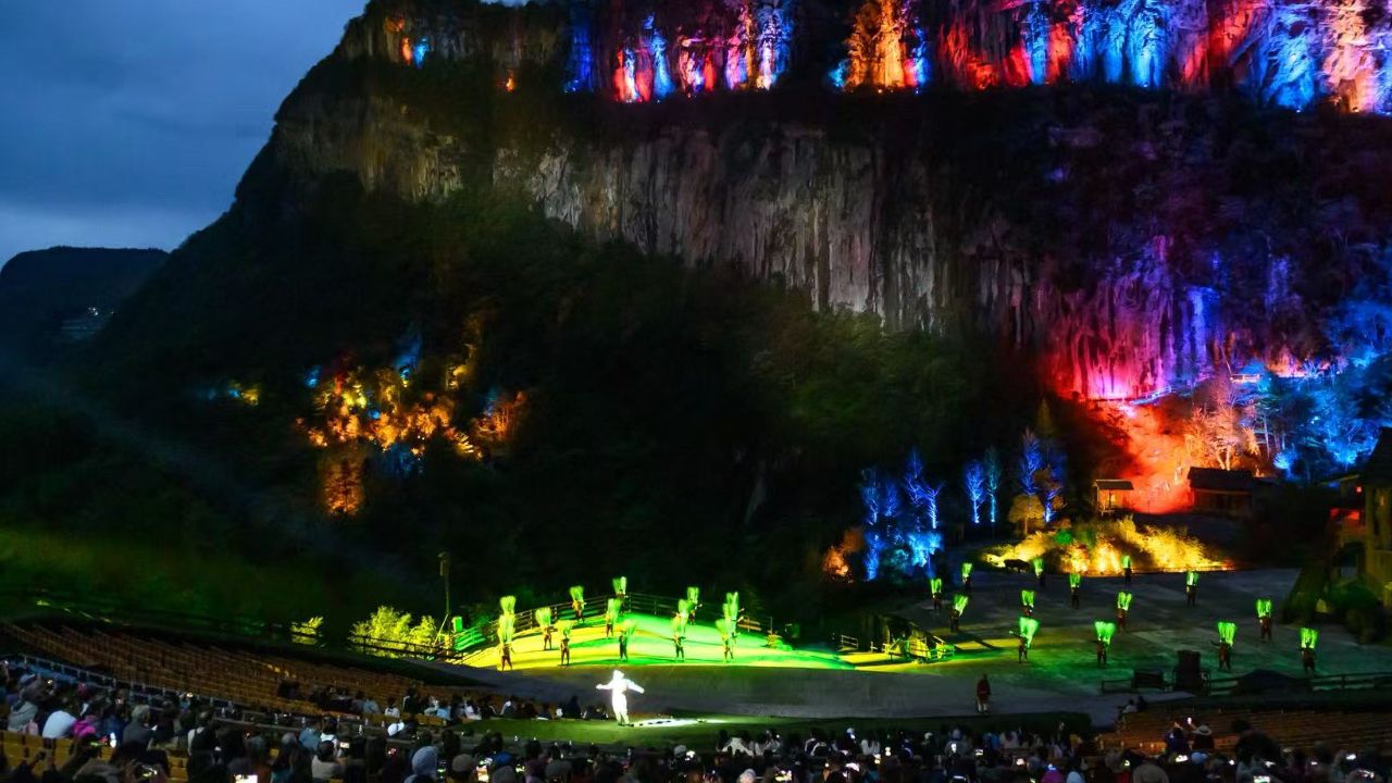 印象•武隆累计演出约4100场,观看人次420万,实现门票收入5亿元,先后荣获首届视界大赏年度“最佳旅游演出奖”、重庆市十二五规划重点文化产业项目、重庆市最具观赏价值文化产业项目、