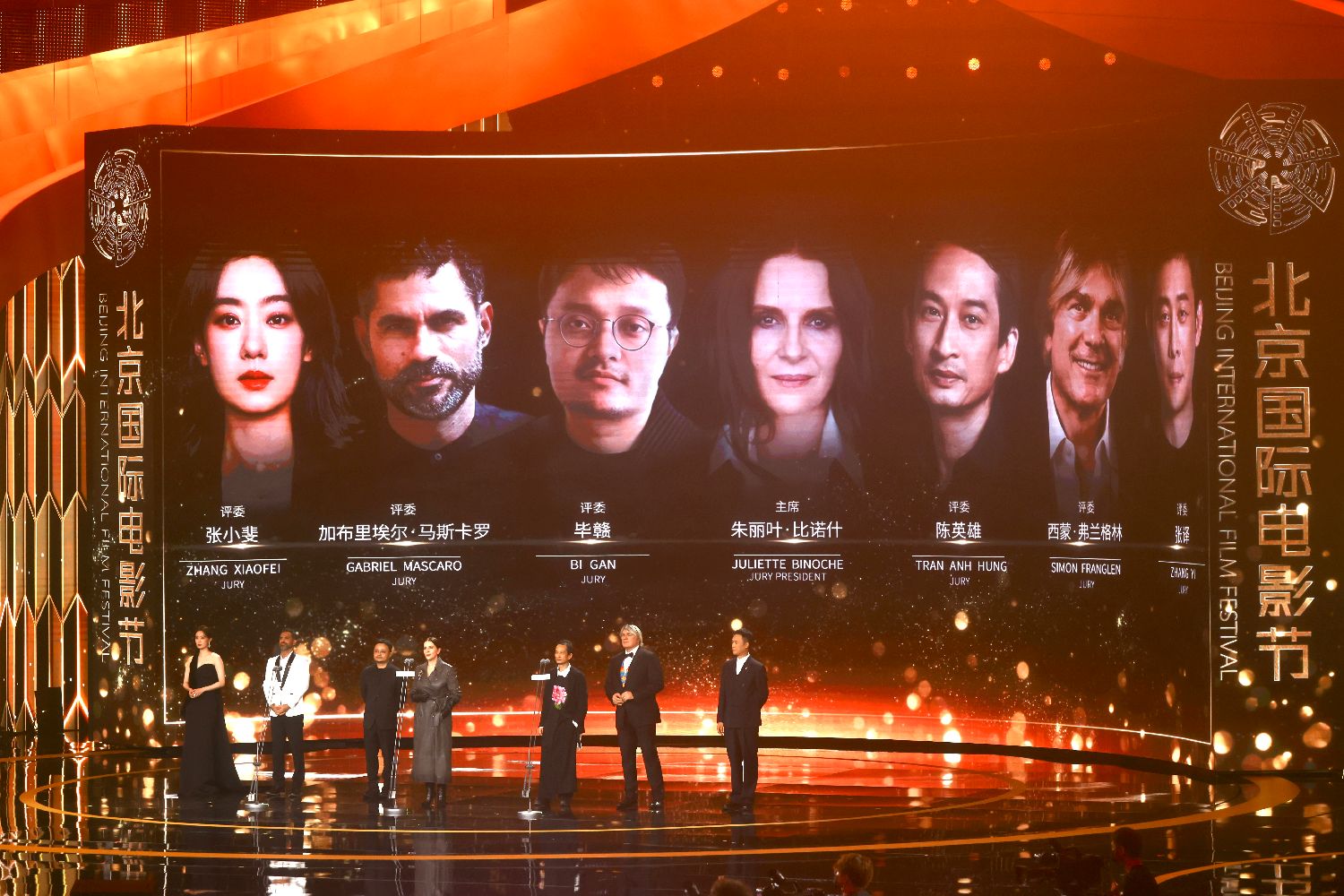 4月16日,第十六届北京国际电影节开幕。图为本届北影节“天坛奖”国际评奖委员会亮相开幕式现场。
